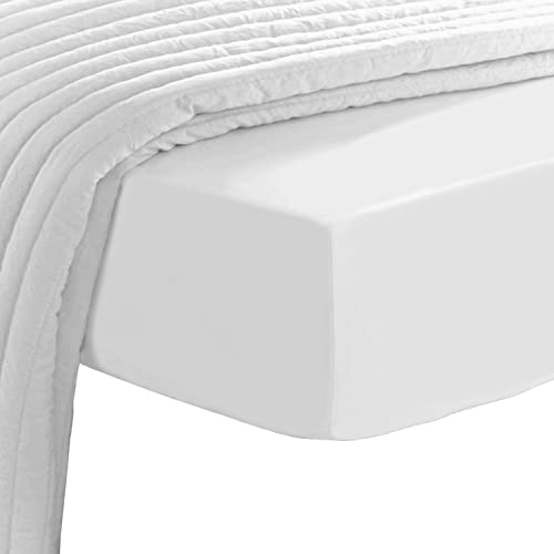 Pizuna Luxe Housse Drap Blanc Coton 800 Fils Armure