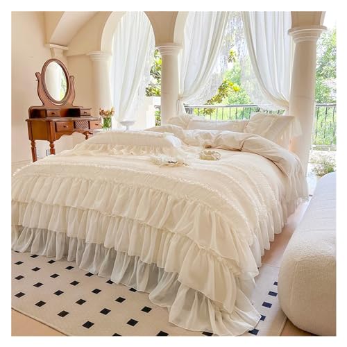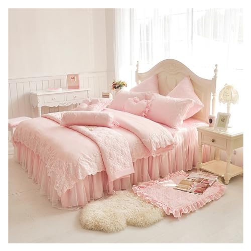 Ensembles de literie Princesse Jupe Dentelle Rose Volants Co...