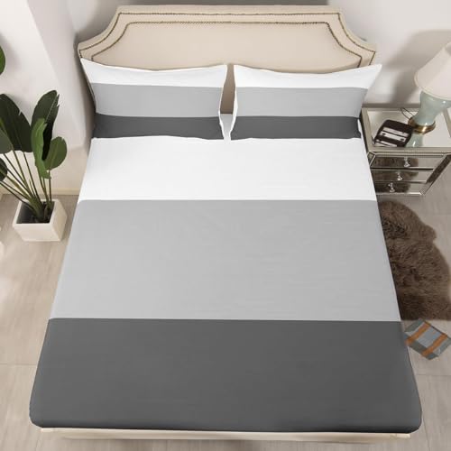 Buohwiwe Drap Housse 140x190 Rayures Grises, 3D Drap-Housse...