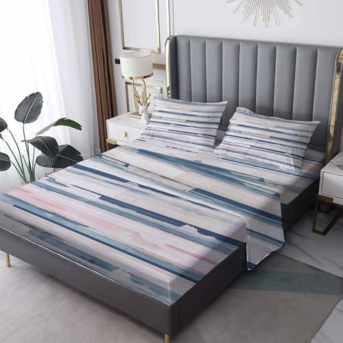 Rayé Parure de Draps 160x200+35cm, Moderne Pièces Imprimées...