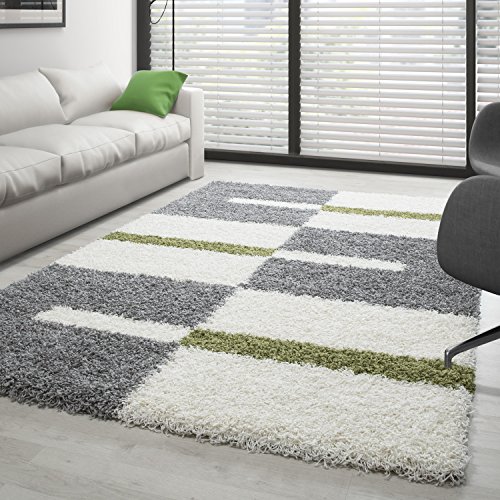 Design à Carreaux Moderne - Ce tapis Shaggy présente un desi...