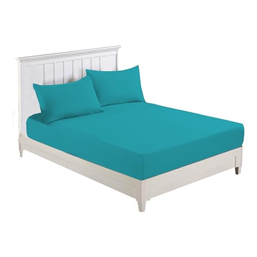 R&Z Uni Drap-Housse Polycoton Simple Double King 1,2m Bleu S...