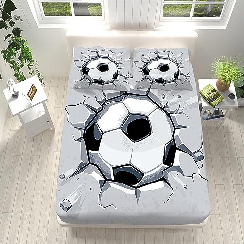 Drap Housse 90x200 cm Gris, 3D Football Drap-Housse 90x200 c...