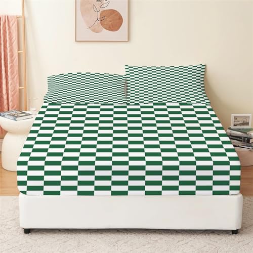 Drap Housse 160x200 cm, Motif CarréS GéOméTriques Blancs Ver...
