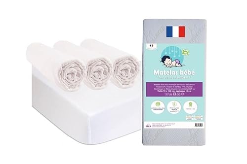 KIT PRATIQUE LIT BEBE | 1 Matelas bambou bébé 70x140cm + 3 D...