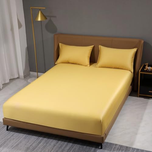 Respirant Drap Housse Simple et Double Satin Coton Jaune 180...