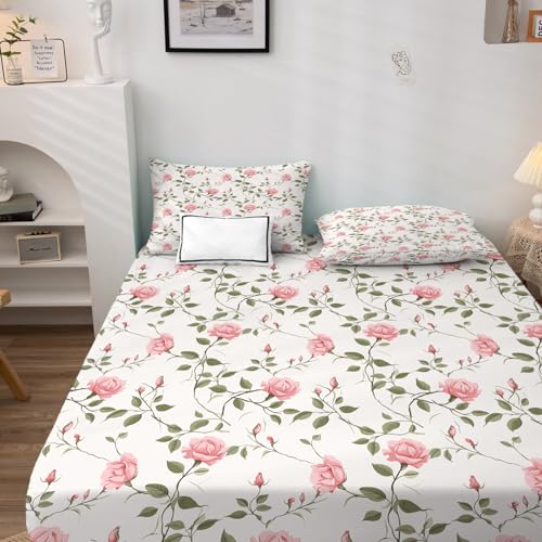Drap Housse 90x190 Fleurs Drap-Housse Rose Rouge Drap Plat p...