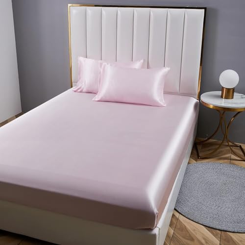 Drap Housse 160x200x30cm Satin Rose Microfibre Respirant Hyp...