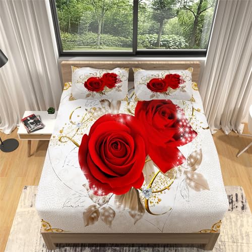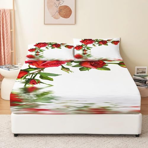Aozhiswe Drap Housse 120x190 Fleur Rose Rouge Draps Housse 1...
