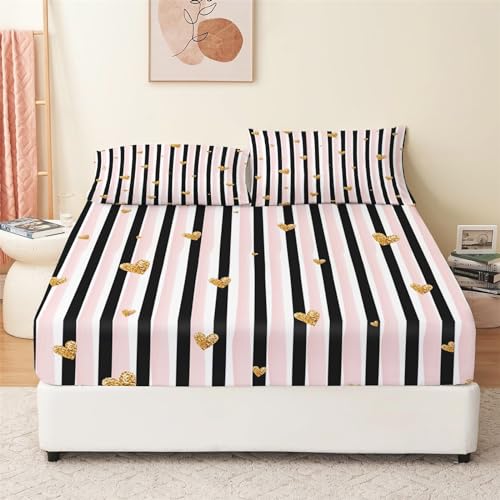 Saint-Valentin Housse Drap 90x190 cm Poche 30cm Rayures Rose...