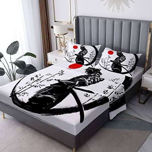 SOSICO Guerrier Draps 180x200cm Bambou Imprimé 4 Pièces