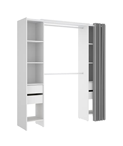 Armoire Dressing, Rangement Blanc, Imitation Chêne