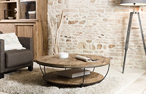 Table basse coque ronde 100x100cm double plateau teck recycl...