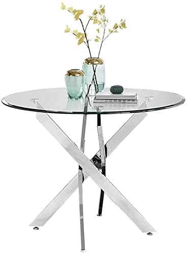 GolDFan Ronde Table de Salle à Manger Verre Trempé Argent 80...