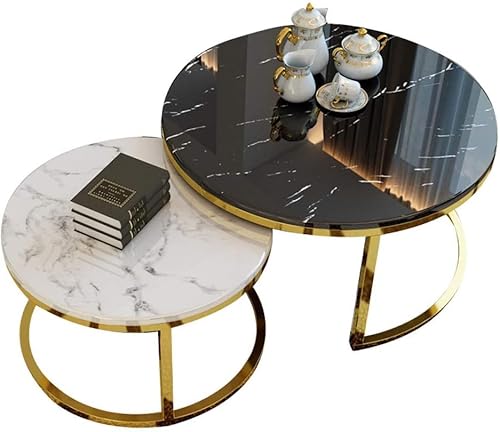CATANK Tables Basses pour Salon Salon Rond Moderne Blanc Noi...
