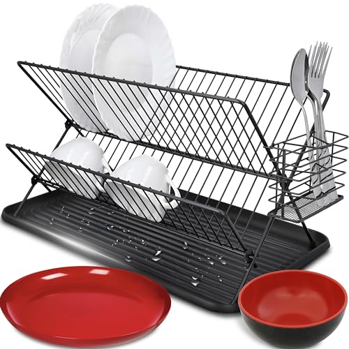 Frasheng Egoutoire Noir à 2 Niveaux avec Plateau d'Égoutteme...