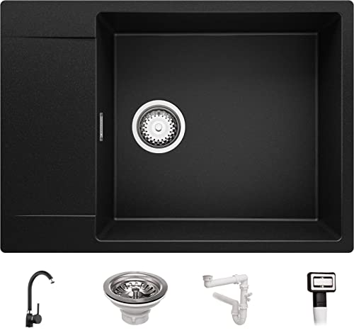 Evier Cuisine en Granit Noir, 78 x 50 cm, Lavabo 1 bac plus...
