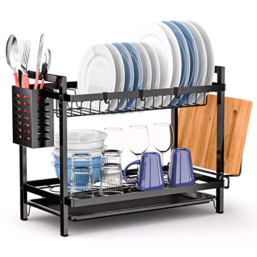 Egoutoire Vaisselle Cuisine Noir, 2 Étages INOX avec Égoutto...