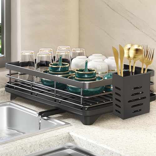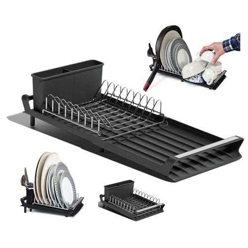 Étendez l''égouttoir à vaisselle noir avec plateau d''égoutt...
