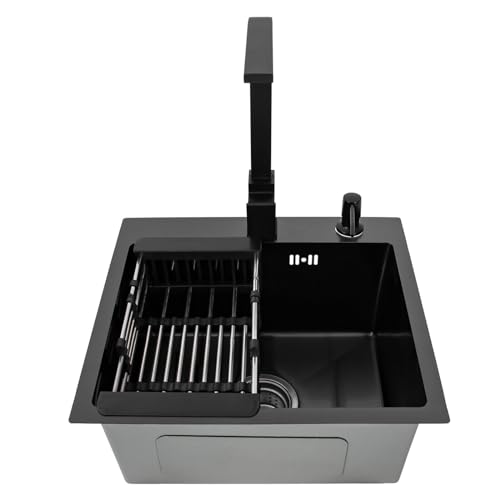 SOSINYA Organisateur d''évier de cuisine noir Égouttoirs Ren...