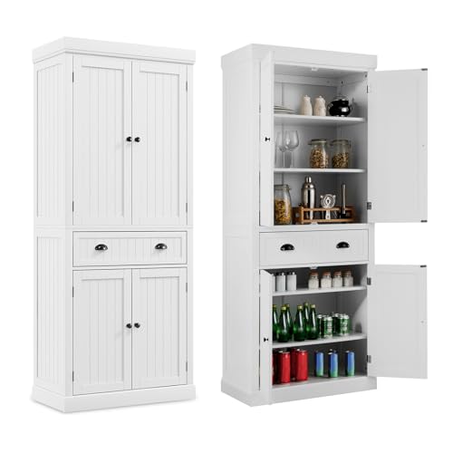 Armoire Coûtway 4 Portes, Grande Rangement avec Tiroir et Ét...