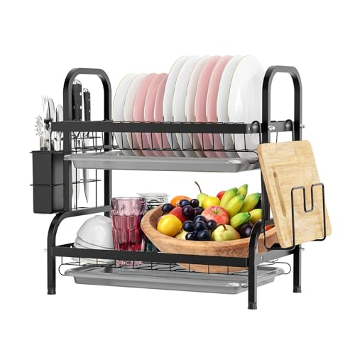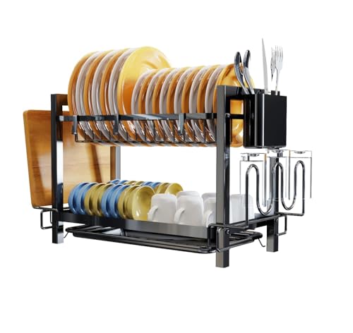 Grande capacité : notre égouttoir à vaisselle double couche...