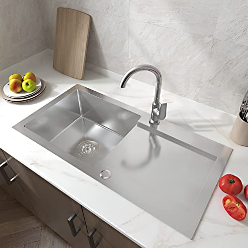 25 Inch Évier Cuisine 1 Bac Brossé, Évier Inox 1 Bac avec Ég...