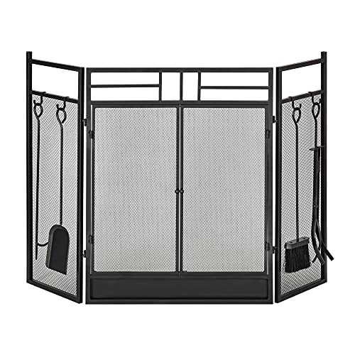 HOMCOM Pare-feu Large pour cheminée ou poêle - Pare-étincell...