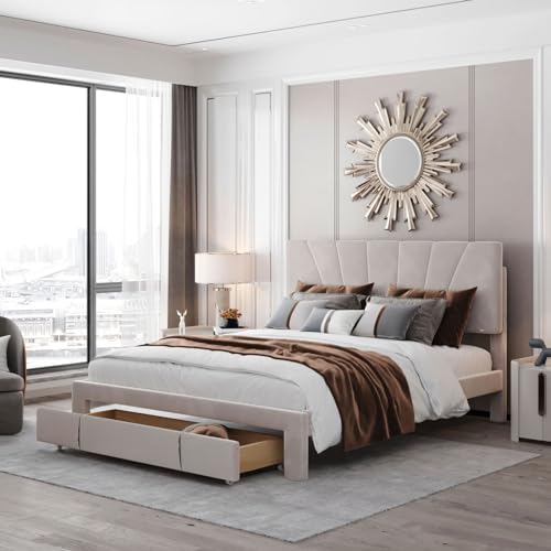 JOROBURO Lit capitonné de 140 x 200 cm avec tissu en velours...