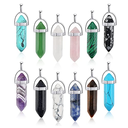 12 Pièces Chakra Pierre Pendentifs Breloques Cristal Hexagon...