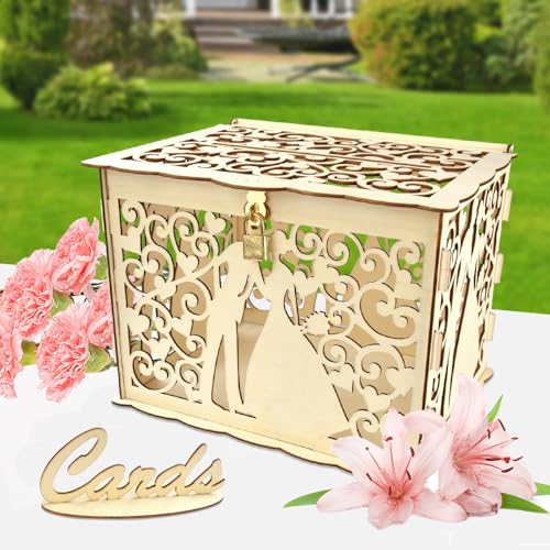 LPAMABA Boîte à Cartes de Mariage Tirelire Mariage en Bois a...