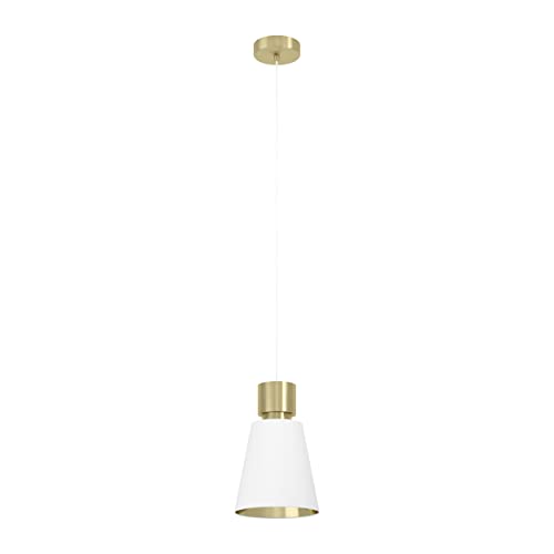 Luminaire suspendu Aglientina, lustre en tissu et laiton bro...
