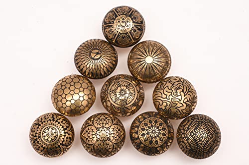 Lot de 10 boutons en laiton battus avec un beau design.