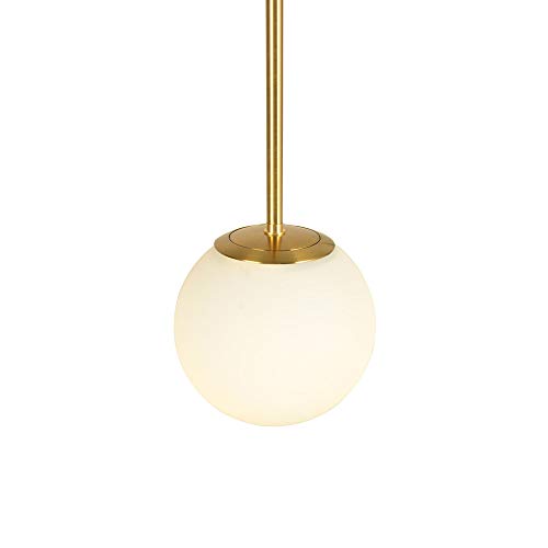 Globe suspendu en verre blanc mat, suspension laiton brossé,...