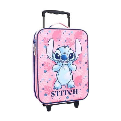 COMPOSITION : Valise à roulettes Rose à l''effigie de Stitch...