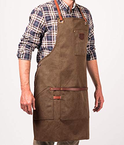 MAKER Tablier de Travail Premium Coton Enduit Cuir