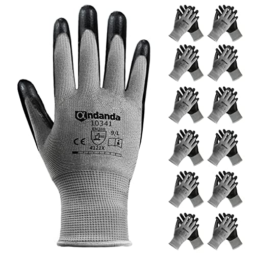 Gants Nitrile Enduit, 12 Paires, Revêtement Antidérapant, Ad...