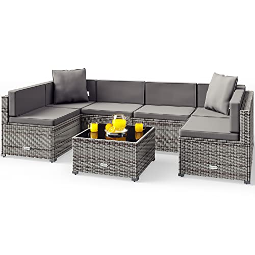 Ensemble de Meubles de Jardin en rotin, canapé 6 Places, Cad...