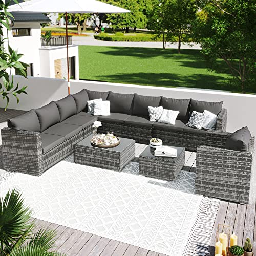 Juskys Salon de Jardin Lounge Manacor en polyrattan Gris mou...