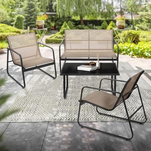 GOPLUS Salon de Jardin Extérieur Résine, Ensemble Meuble 4 P...