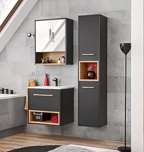 Mai & Mai Meuble de Salle de Bain Gris Noir Mat Ensemble de...