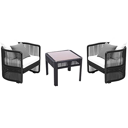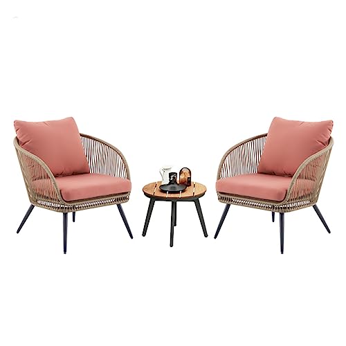 Yanld Ensemble de Meubles Bistro Patio 3 Pièces, Osier Rotin...