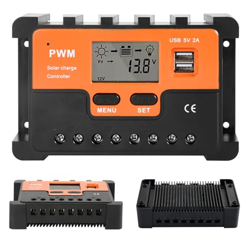 Contrôleur Charge Solaire DEWIN 30A 12V/24V PWM Double Sorti...