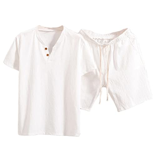 Tenue Ensemble Homme Lin Unie T-Shirt Courte Décontracté