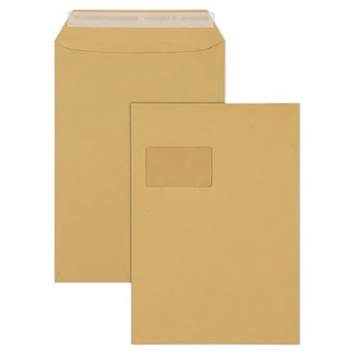 50 enveloppes DIN C4 marron peal&seal avec adhésif fenêtre -...