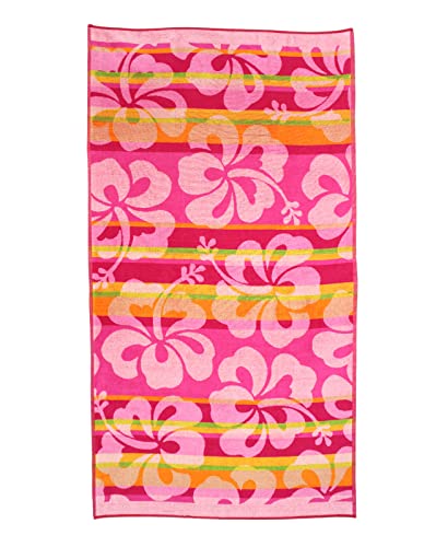 Serviette plage 90 x 165 cm coton velours éponge fleurs rose