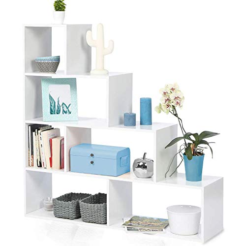 Cette bibliothèque escalier 6 cases blanche au style contemp...
