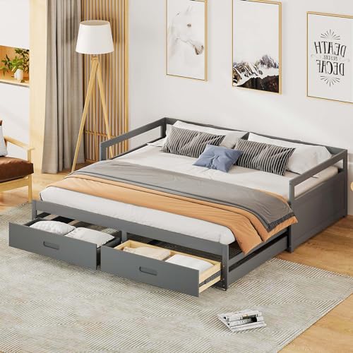 KOMHTOM Lit escamotable Gris lit sommier à Lattes avec Range...