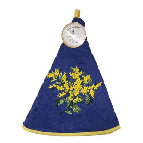 Essuie-mains rond brodé éponge tissage Jacquard Mimosa bleu...