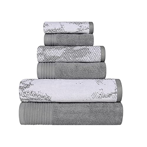 Lot de 6 Serviettes en Coton Absorbantes, Motif Marbré, 2 Se...